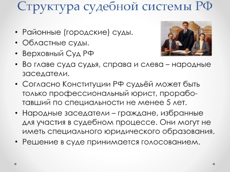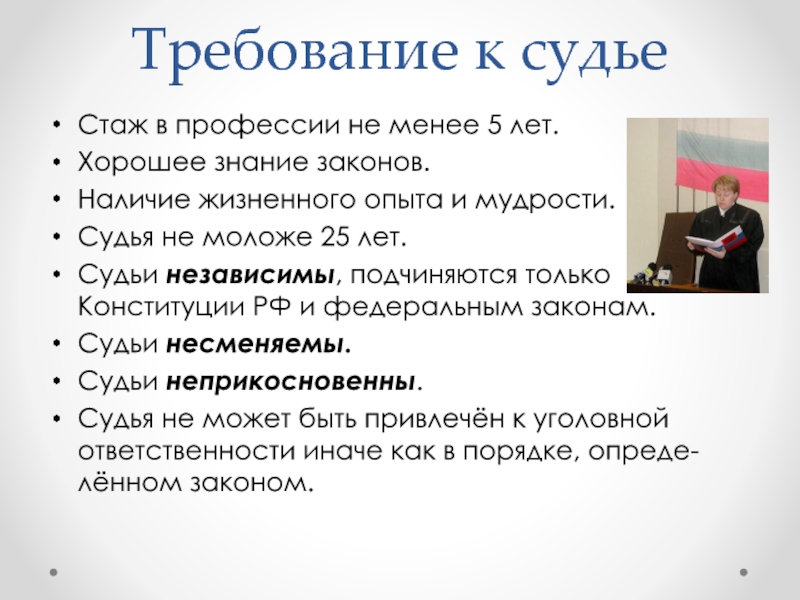 судьёй может быть только профессиональный юрист, прорабо-тавший по специальности не менее 5 лет.