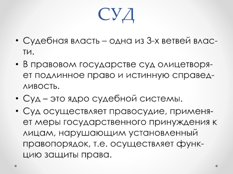 суд олицетворя-ет подлинное право и истинную справед-ливость.