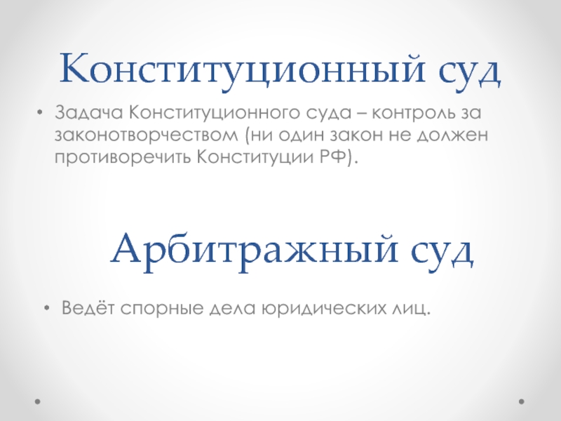 Задача Конституционного суда – контроль за законотворчеством (ни один