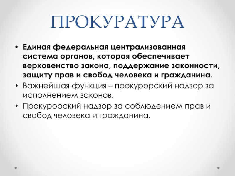Единая федеральная централизованная система органов, которая обеспечивает верховенство закона, поддержание