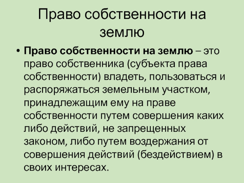 собственника (субъекта права собственности) владеть, пользоваться и распоряжаться земельным участком,
