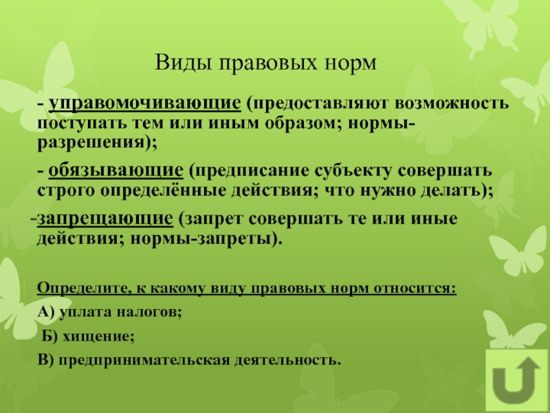 Определите, к какому виду правовых норм относится: