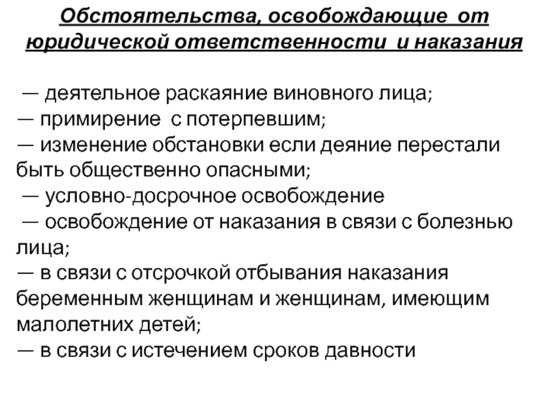 Слайд 80Обстоятельства, освобождающие от юридической ответственности и наказания