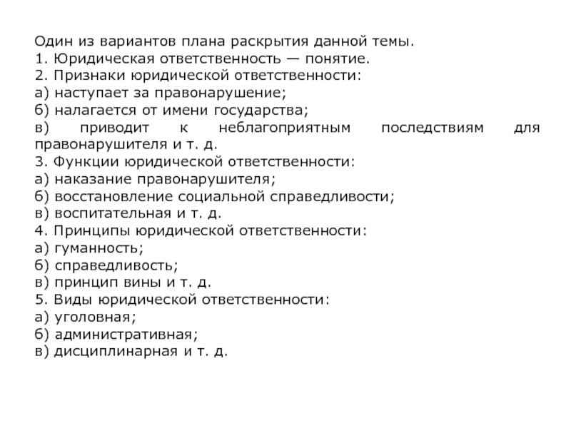 тему «Юридическая ответственность». План должен содержать не менее трёх пунктов,