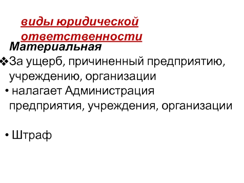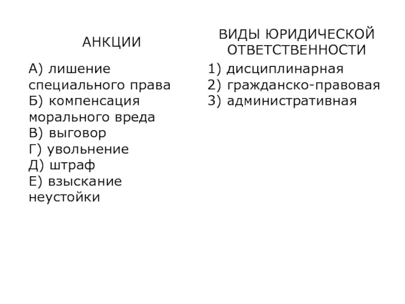 − одно предложение, содержащее информацию о видах юридической ответственности;