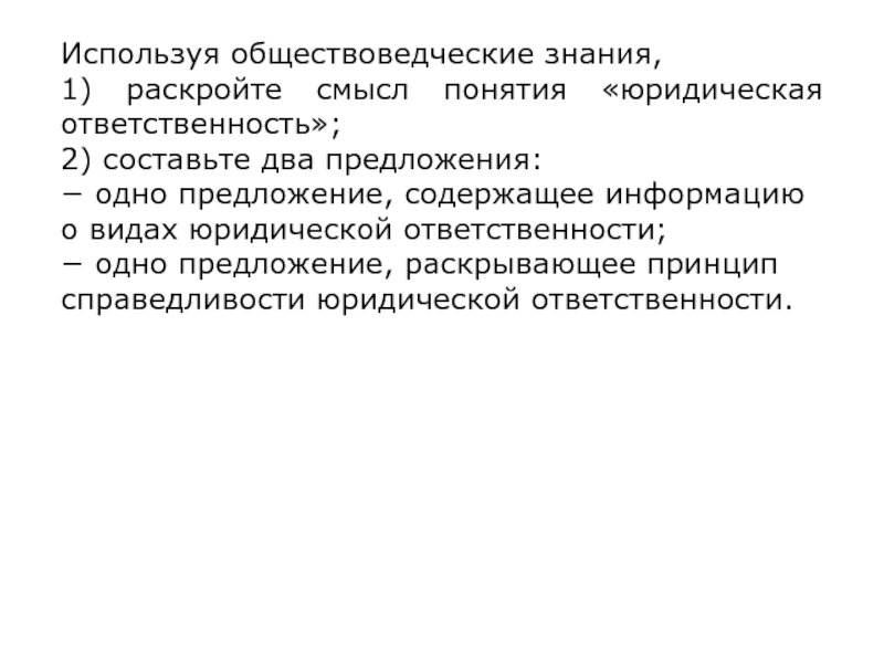 1) раскройте смысл понятия «юридическая ответственность»;