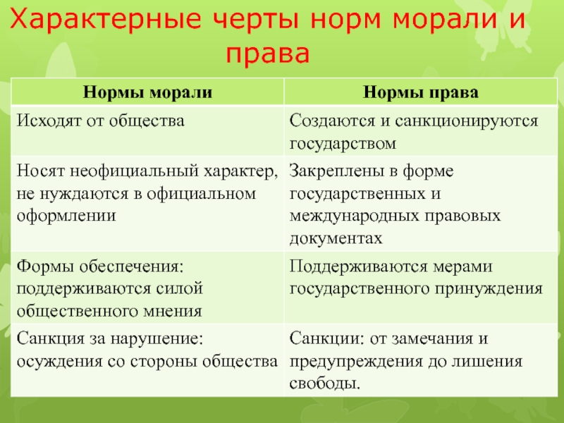 Слайд 5Характерные черты норм морали и права