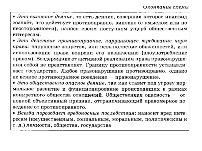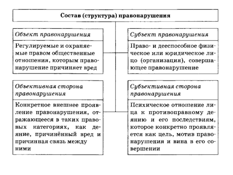 виновное; 4) общественноопасное; 5) общественное отношение; 6) содержит права и обязанности участников.