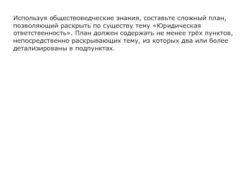 Слайд 89Используя обществоведческие знания, составьте сложный план, позволяющий раскрыть по существу
