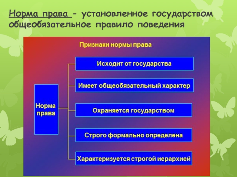 Слайд 8Норма права - установленное государством общеобязательное правило поведения