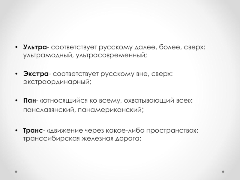Слайд 16Ультра- соответствует русскому далее, более, сверх: ультрамодный, ультрасовременный;