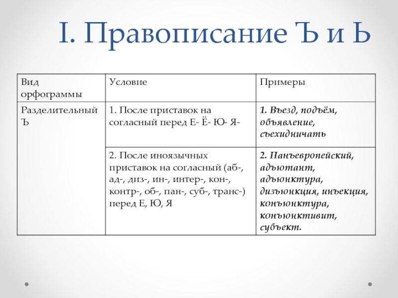 ъ) – «разделение, отрицание, противопоставление»: дисгармония, дисквалификация, дисфункция, дискомфорт, дизъюкция;