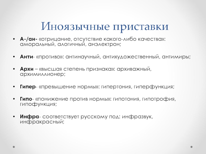 Слайд 13 Иноязычные приставки