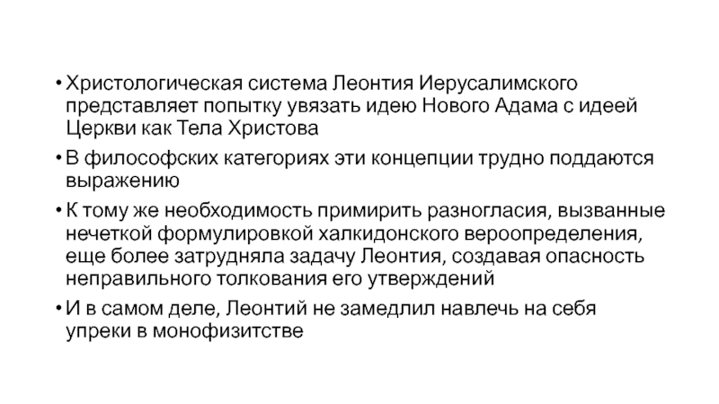 Слайд 7Христологическая система Леонтия Иерусалимского представляет попытку увязать идею Нового Адама