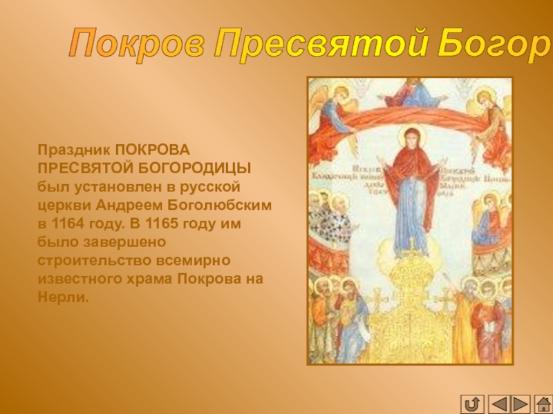 Праздник ПОКРОВА ПРЕСВЯТОЙ БОГОРОДИЦЫ был установлен в русской