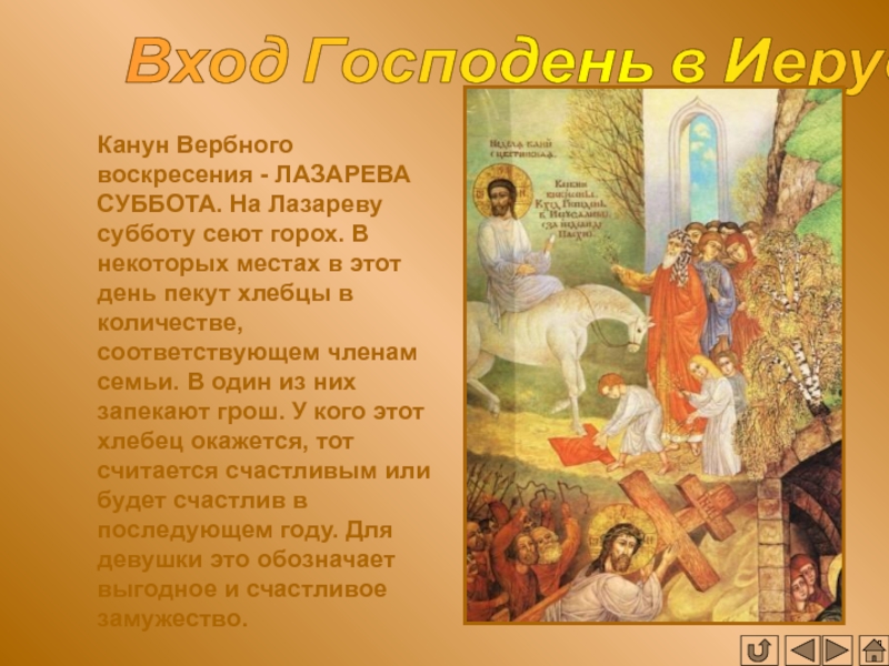 Канун Вербного воскресения - ЛАЗАРЕВА СУББОТА. На
