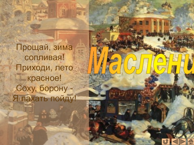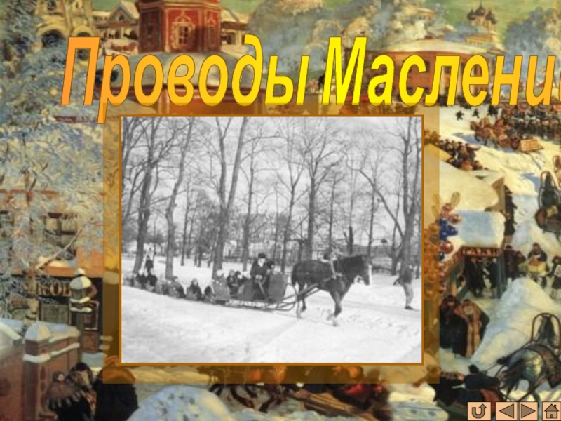 горок на рогожках и дощечках, катались на празднично украшенных санях.