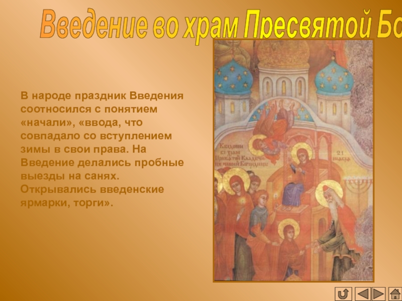 права. На Введение делались пробные выезды на санях. Открывались введенские ярмарки, торги».
