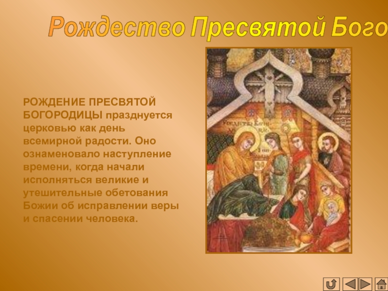 РОЖДЕНИЕ ПРЕСВЯТОЙ БОГОРОДИЦЫ празднуется церковью как день всемирной