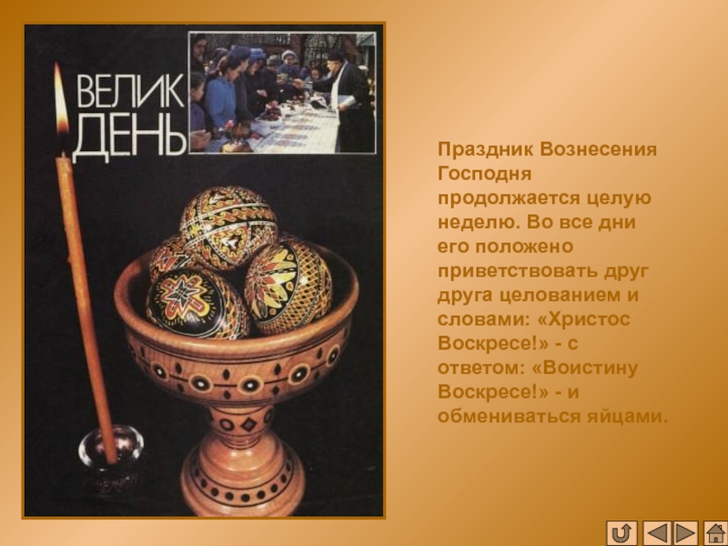 с ответом: «Воистину Воскресе!» - и обмениваться яйцами.