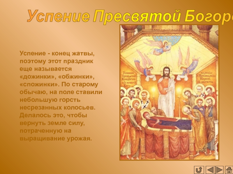 небольшую горсть несрезанных колосьев. Делалось это, чтобы вернуть земле силу, потраченную на выращивание урожая.