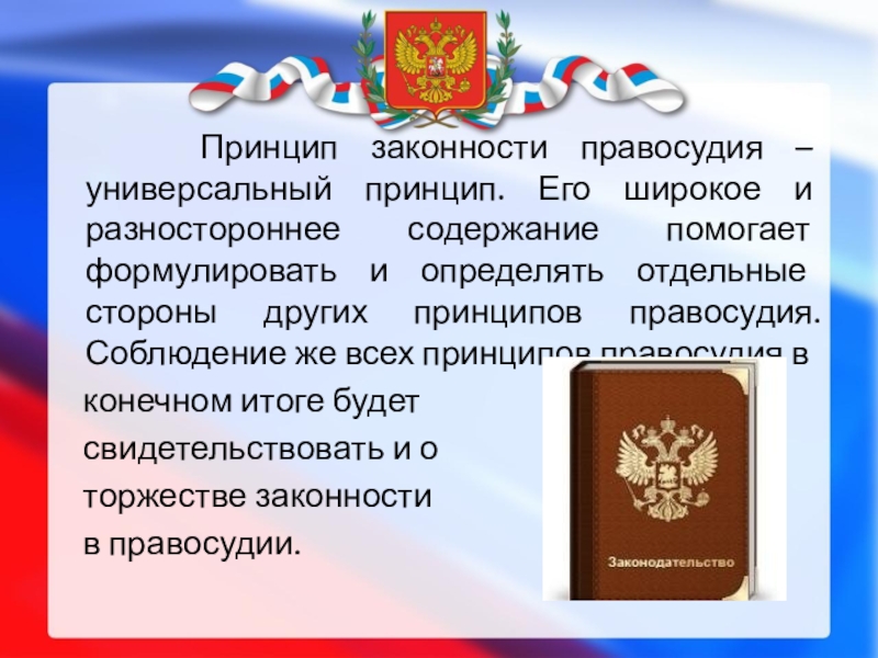 Слайд 12 Принцип законности правосудия.