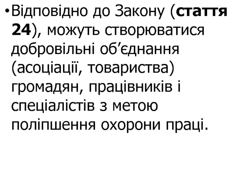 Слайд 28Відповідно до Закону (стаття 24), можуть створюватися добровільні об’єднання (асоціації,