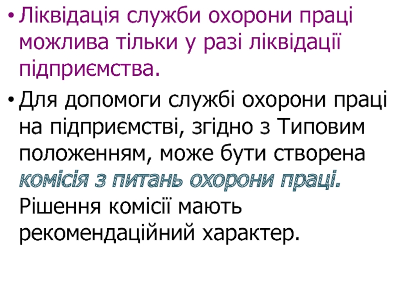 Слайд 18Ліквідація служби охорони праці можлива тільки у разі ліквідації підприємства.