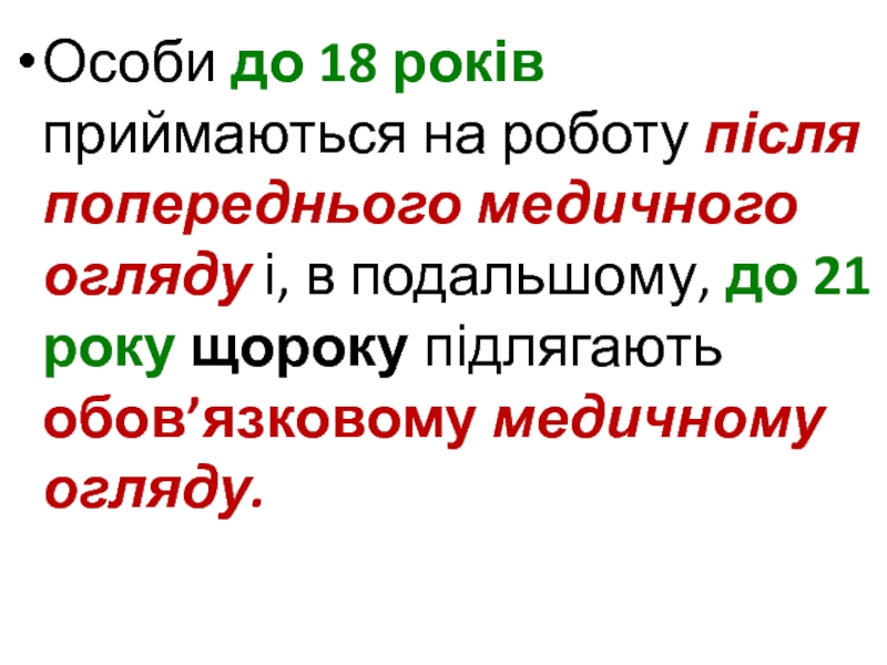 Слайд 82Особи до 18 років приймаються на роботу після попереднього медичного