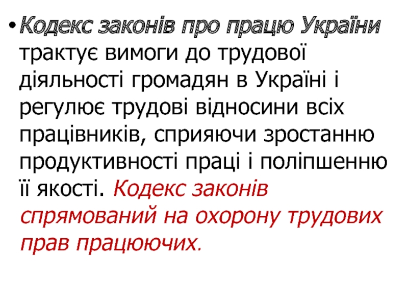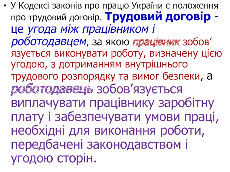Слайд 65У Кодексі законів про працю України є положення про трудовий