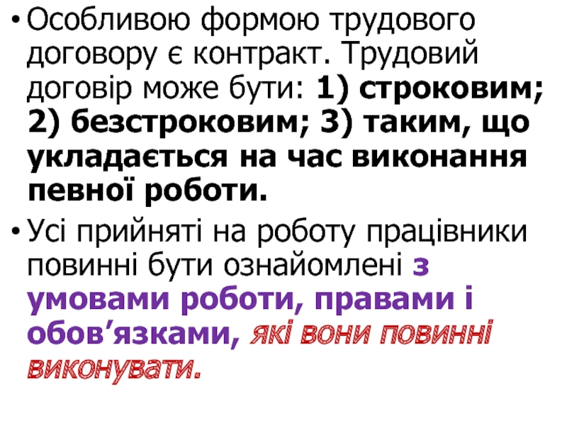 Слайд 66Особливою формою трудового договору є контракт. Трудовий договір може бути: