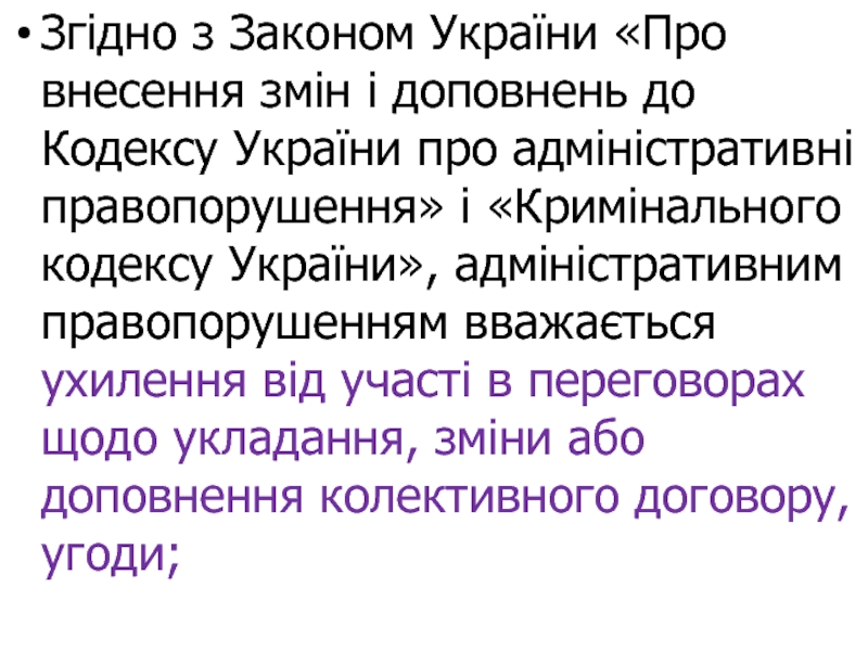 правопорушенням вважається ухилення від участі в переговорах щодо укладання, зміни або доповнення колективного договору, угоди;