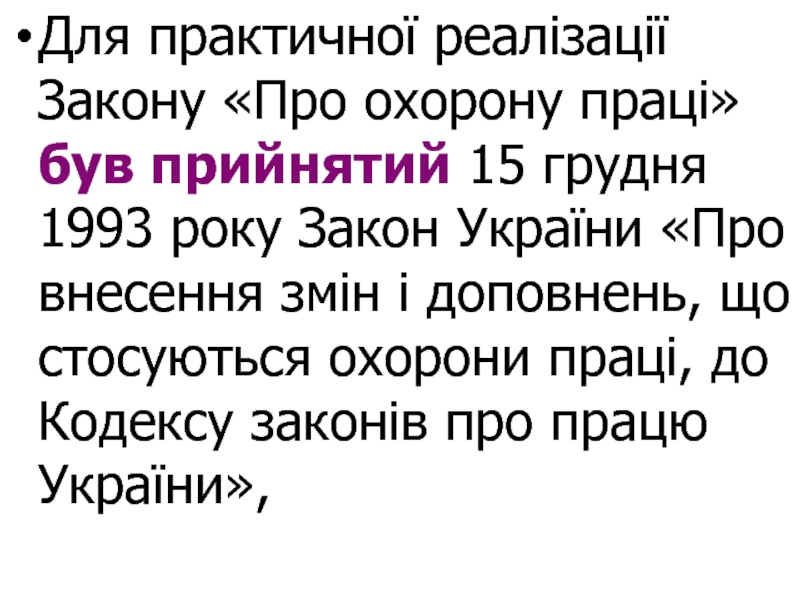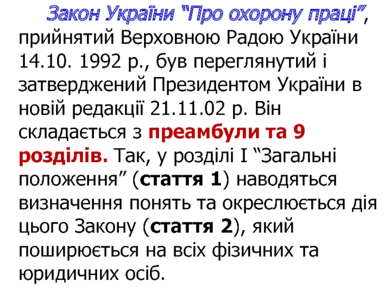 Слайд 7 Закон України “Про охорону праці”, прийнятий Верховною Радою України