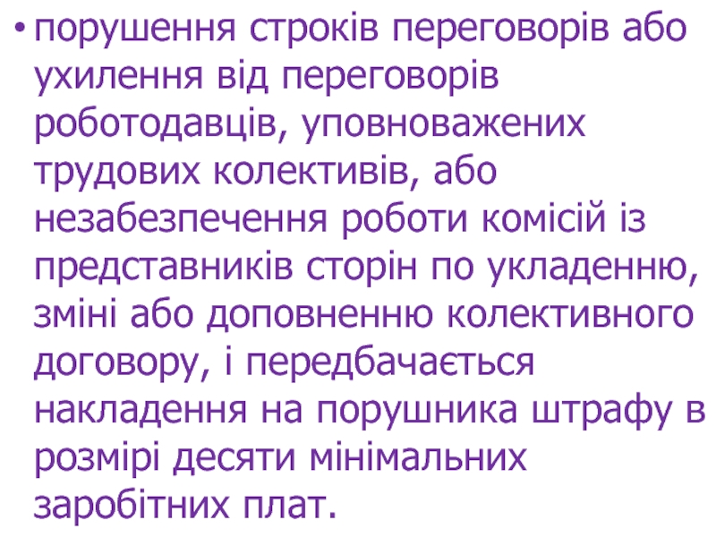 Слайд 62порушення строків переговорів або ухилення від переговорів роботодавців, уповноважених трудових