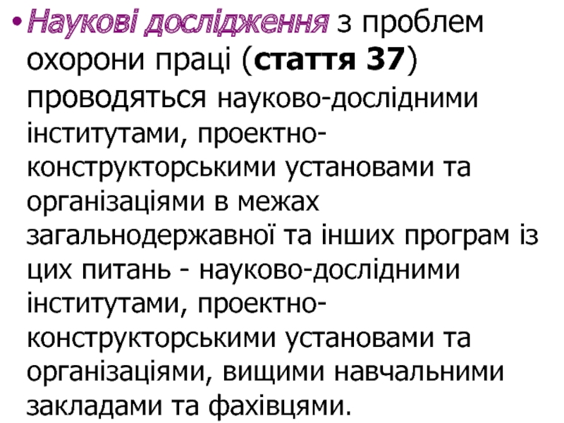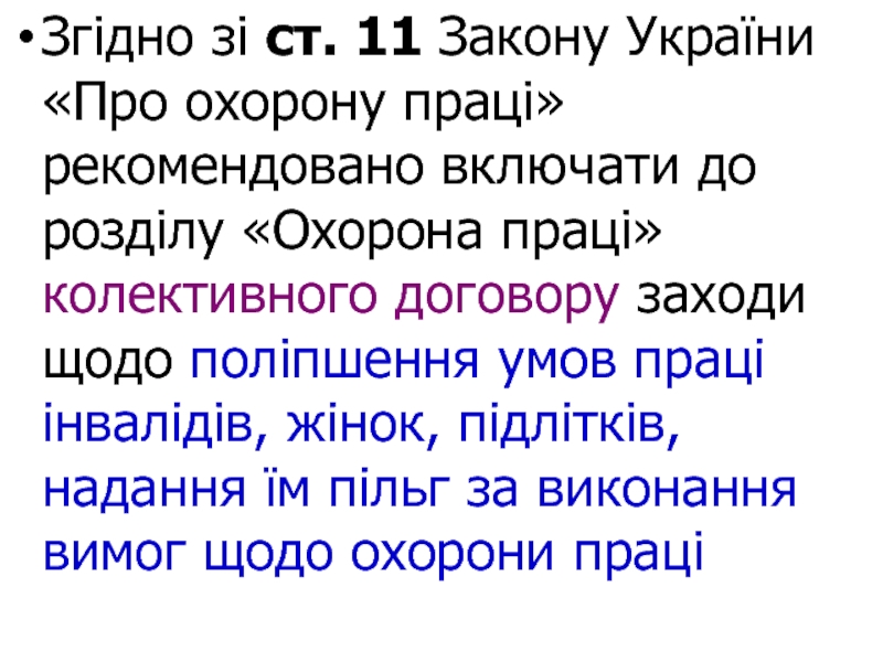 Слайд 60Згідно зі ст. 11 Закону України «Про охорону праці» рекомендовано