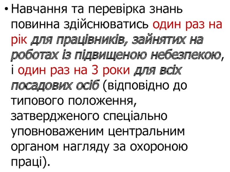 Слайд 20Навчання та перевірка знань повинна здійснюватись один раз на рік