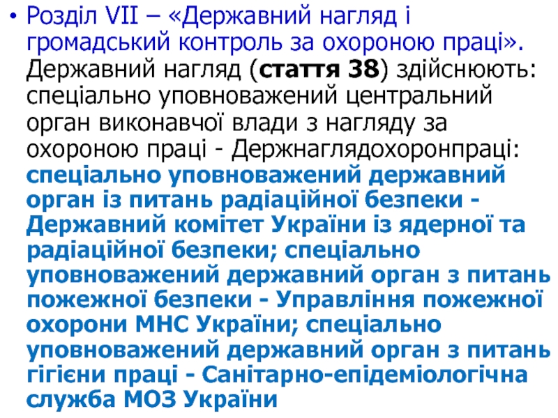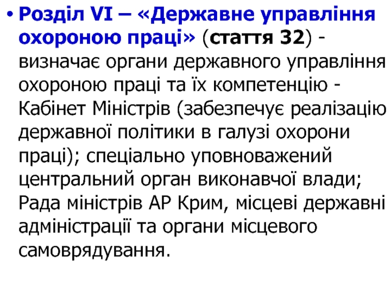 Слайд 33Розділ VI – «Державне управління охороною праці» (стаття 32) -