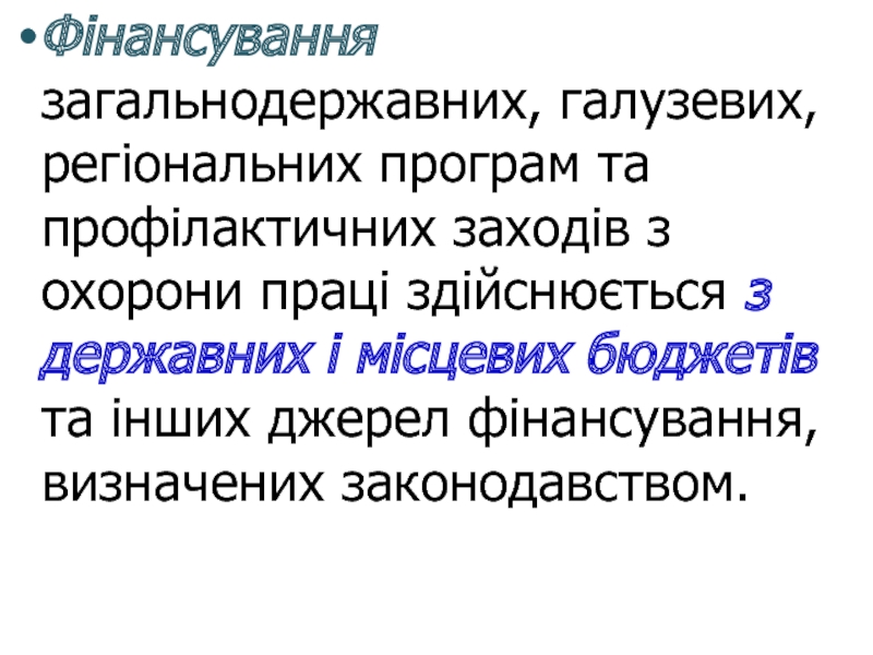 Слайд 23Фінансування загальнодержавних, галузевих, регіональних програм та профілактичних заходів з охорони