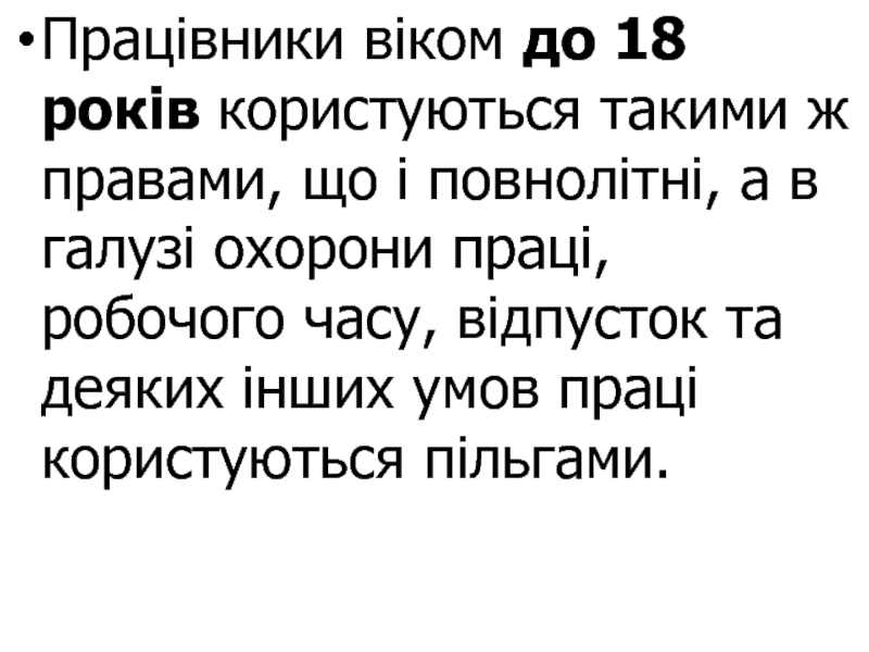 Слайд 79Працівники віком до 18 років користуються такими ж правами, що
