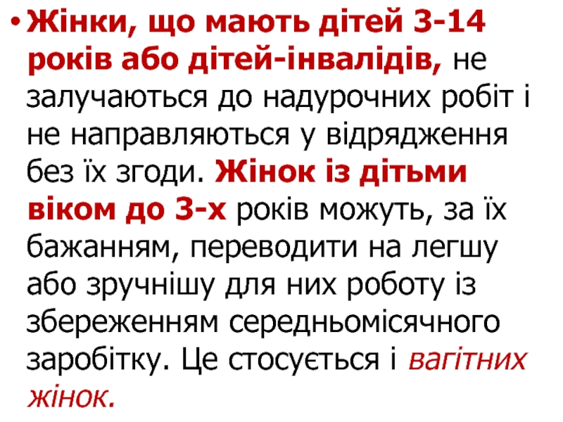 Слайд 75Жінки, що мають дітей 3-14 років або дітей-інвалідів, не залучаються