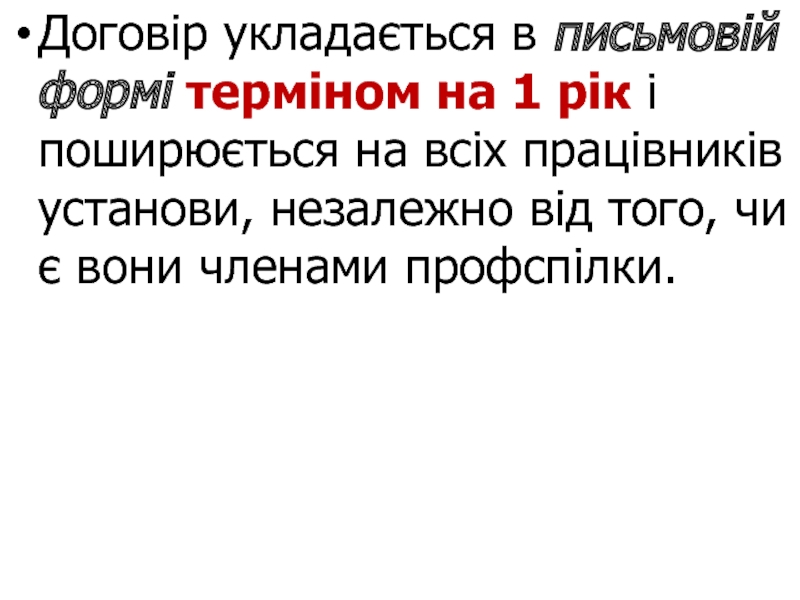 Слайд 56Договір укладається в письмовій формі терміном на 1 рік і