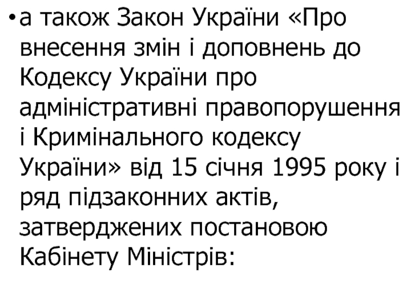 Слайд 61Згідно з Законом України «Про внесення змін і доповнень до