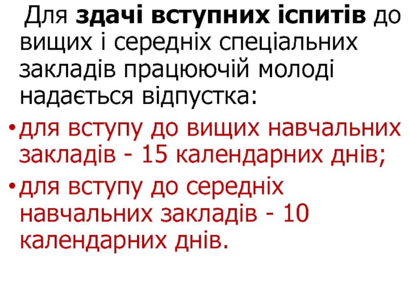 Слайд 87 Для здачі вступних іспитів до вищих і середніх спеціальних закладів