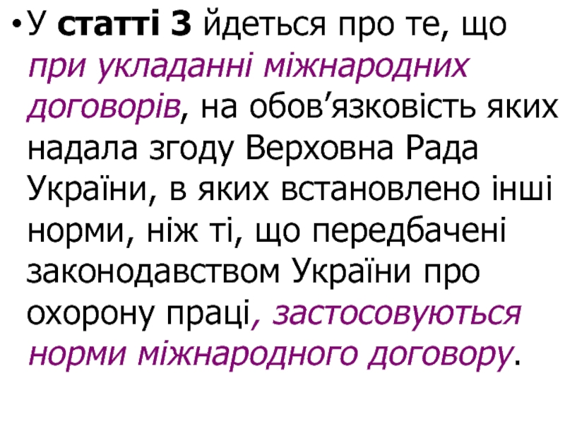 Слайд 8У статті 3 йдеться про те, що при укладанні міжнародних