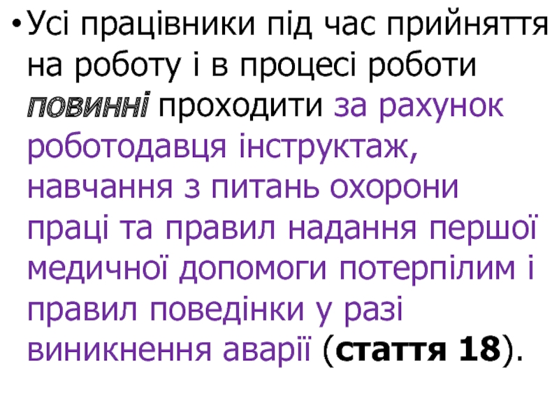 Слайд 19Усі працівники під час прийняття на роботу і в процесі