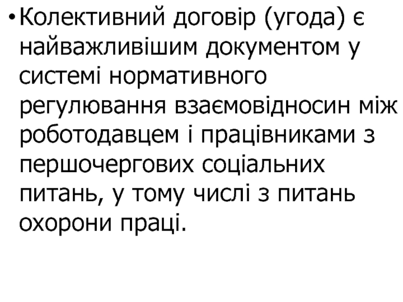 Слайд 57Колективний договір (угода) є найважливішим документом у системі нормативного регулювання