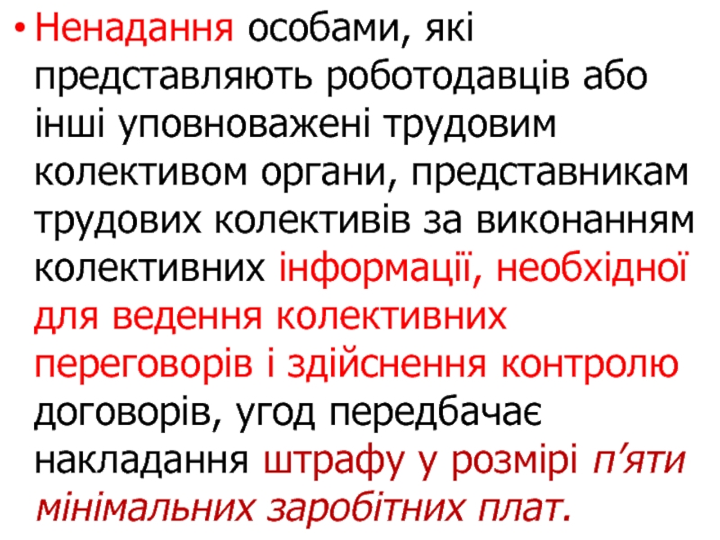 Слайд 64Ненадання особами, які представляють роботодавців або інші уповноважені трудовим колективом