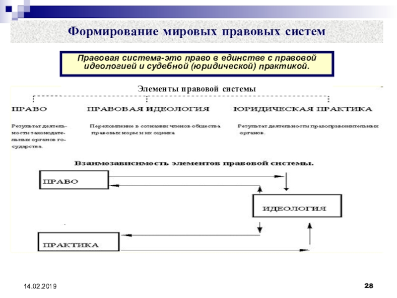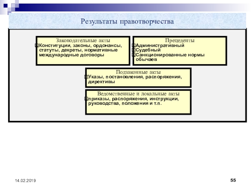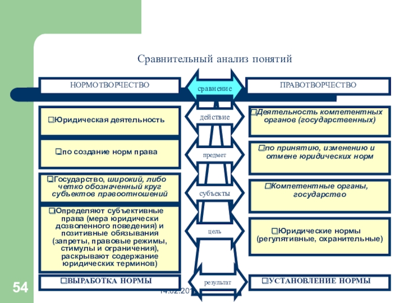 это процесс создания и развития действующего права как единой и внутренне согласованной системы общеобязательных норм, регулирующих общественные отношения, специальная, имеющая официальное значение деятельность по установлению правового регулирования