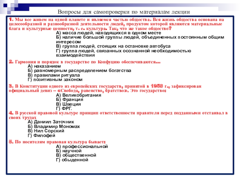 6. Роль и место правой культуры в системе общей культуры российского общества.