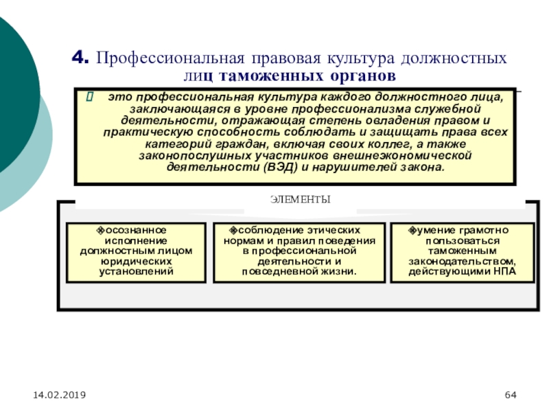 Слайд 644. Профессиональная правовая культура должностных лиц таможенных органов